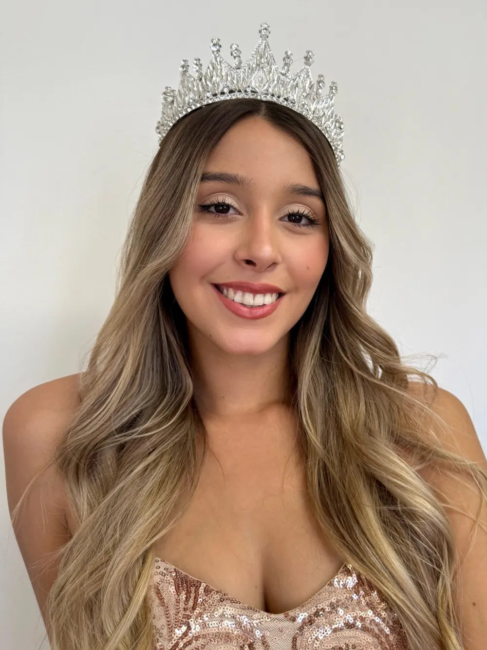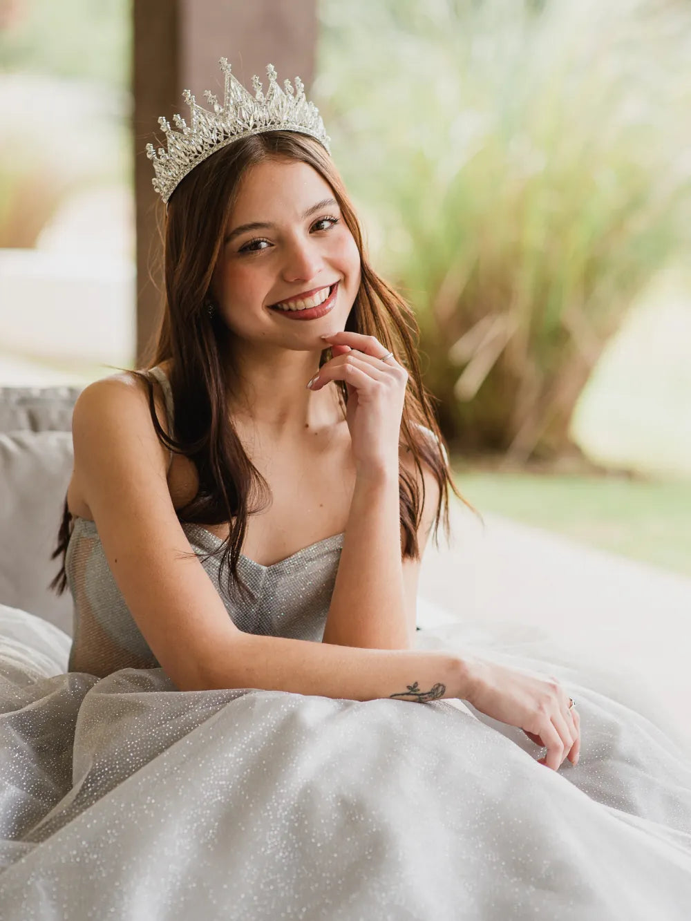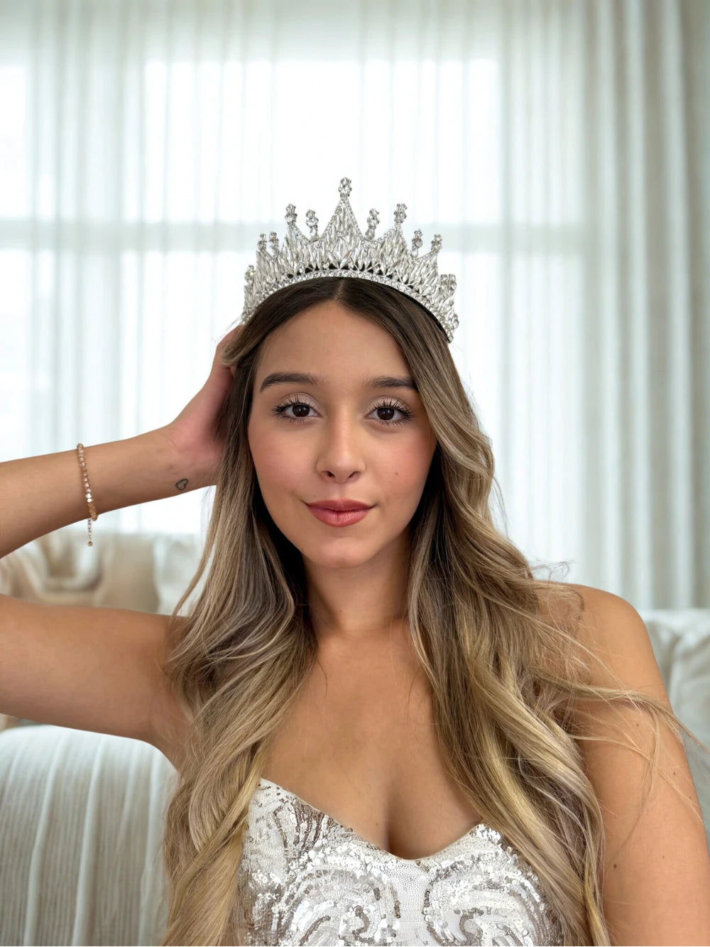 La Corona Cristal Imperial es una joya de diseño majestuoso que captura todas las miradas con su brillo impecable y estructura simétrica. Esta pieza fue creada para mujeres que desean una corona elegante, refinada y con una presencia inolvidable. Es una opción deslumbrante para quienes están en busca de una corona de 15 años que refleje poder, estilo y sofisticación.