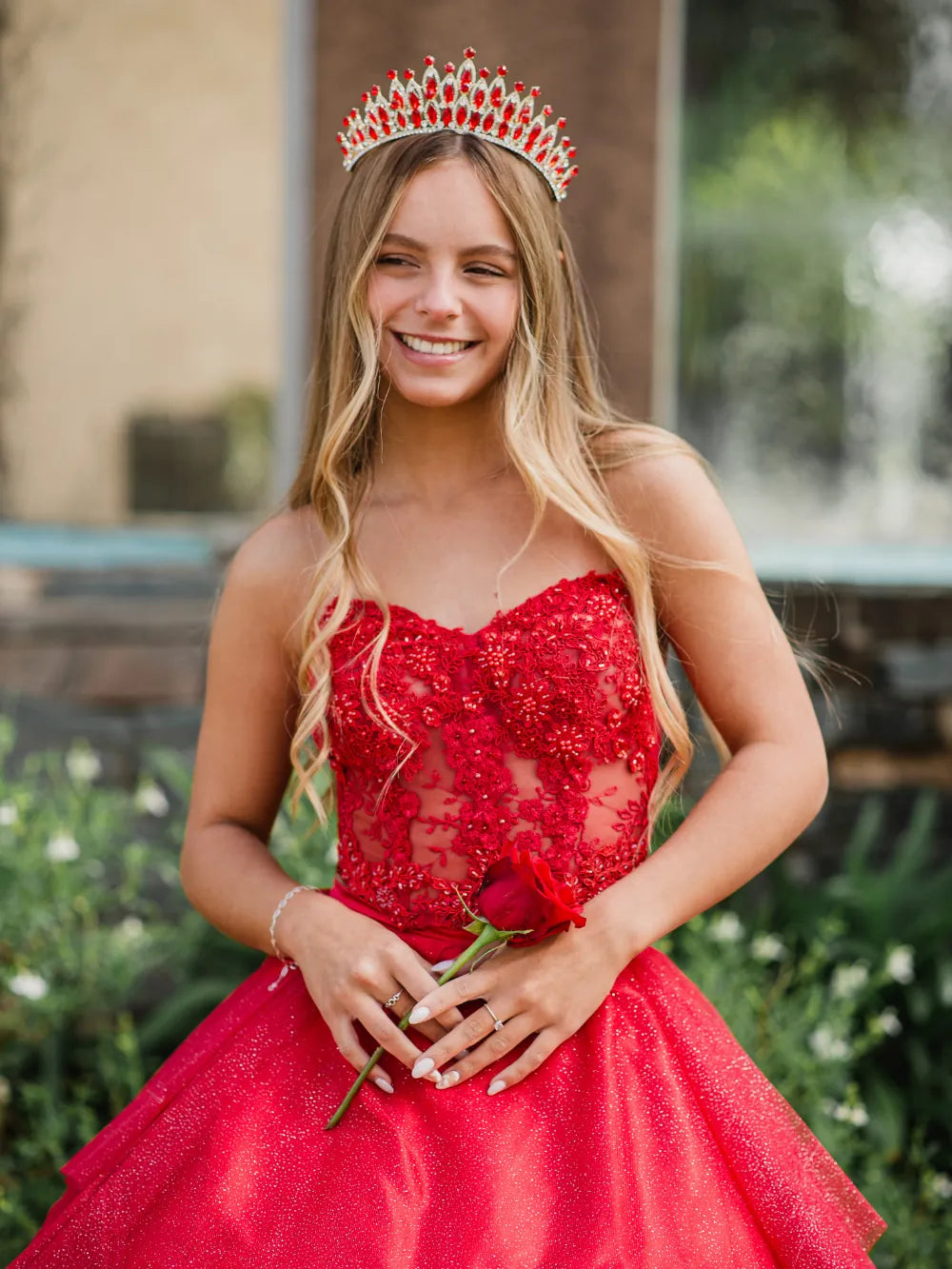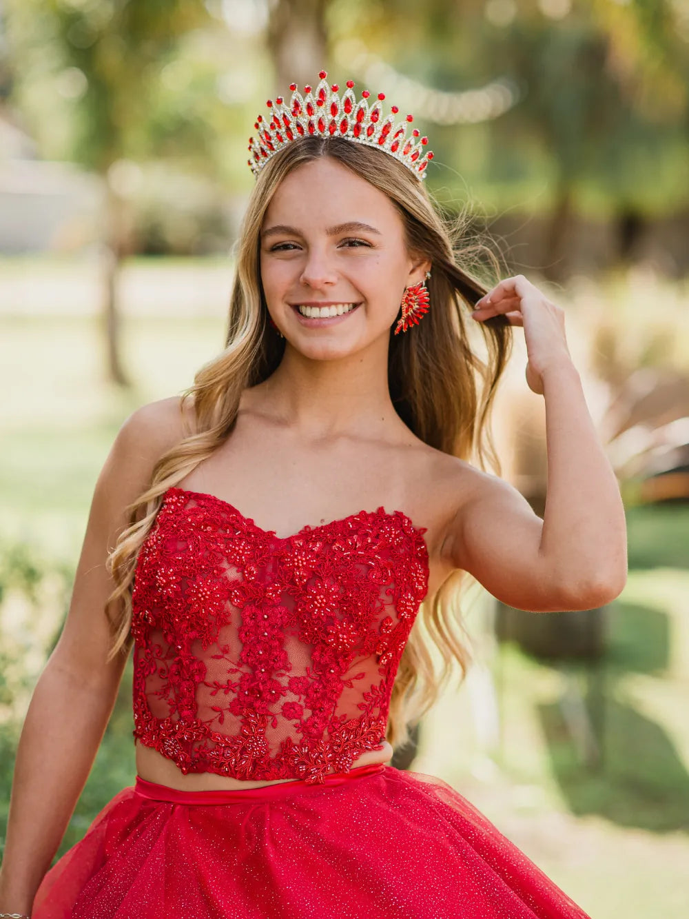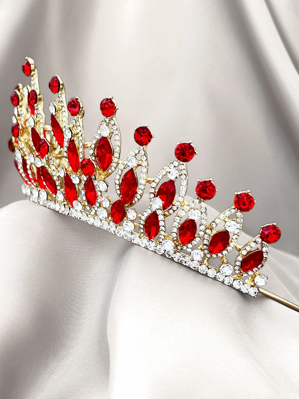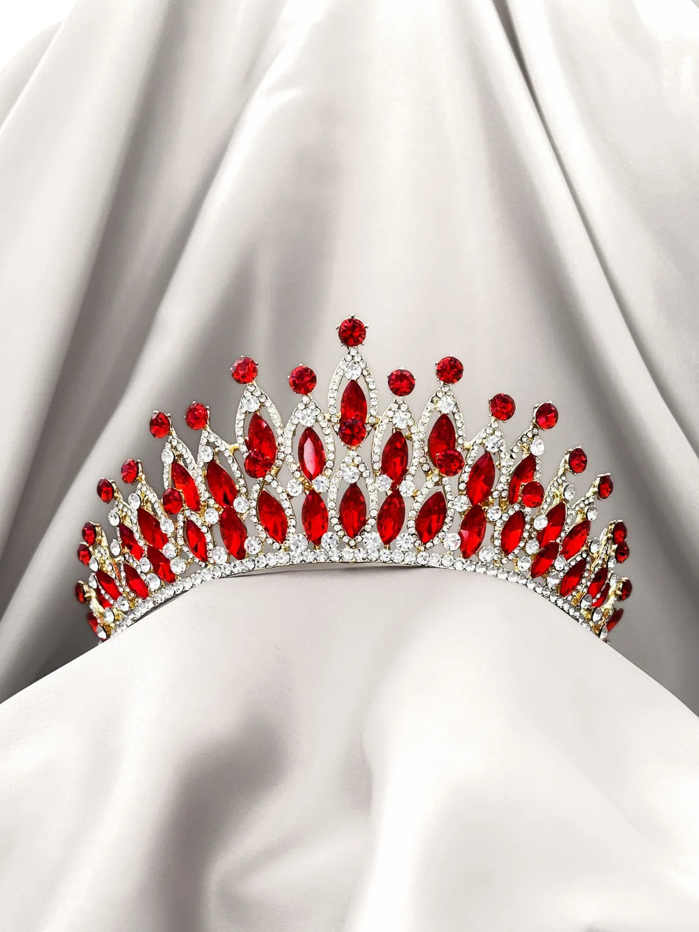 La Cumbre Real – Rubí es una tiara de alto impacto visual, diseñada para aquellas mujeres que no temen brillar con intensidad. Su diseño envolvente y audaz combina la fuerza del rojo rubí con el esplendor del dorado, logrando una pieza que grita realeza desde todos los ángulos.