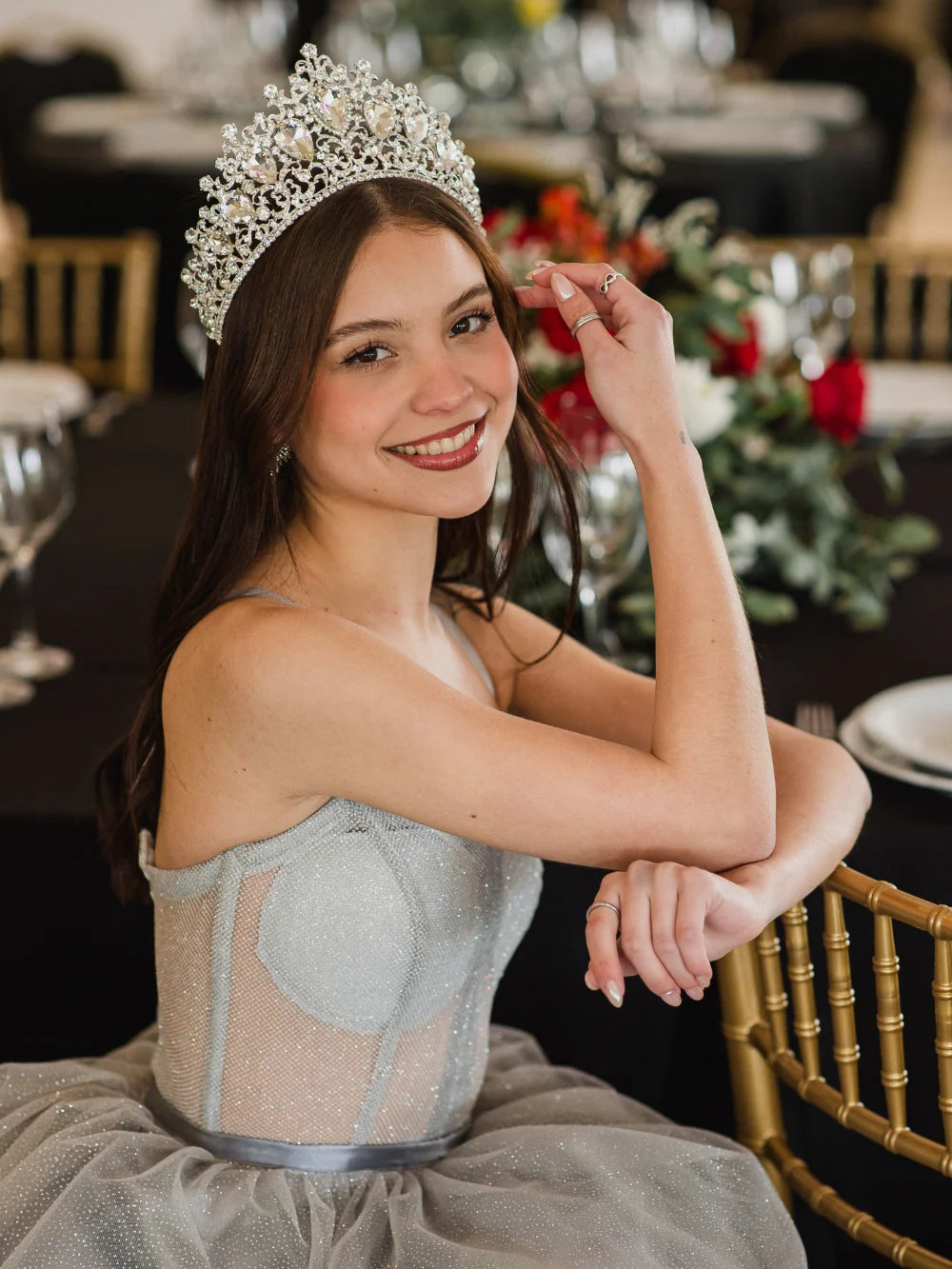 Corona Emperatriz de Cristal Plateada