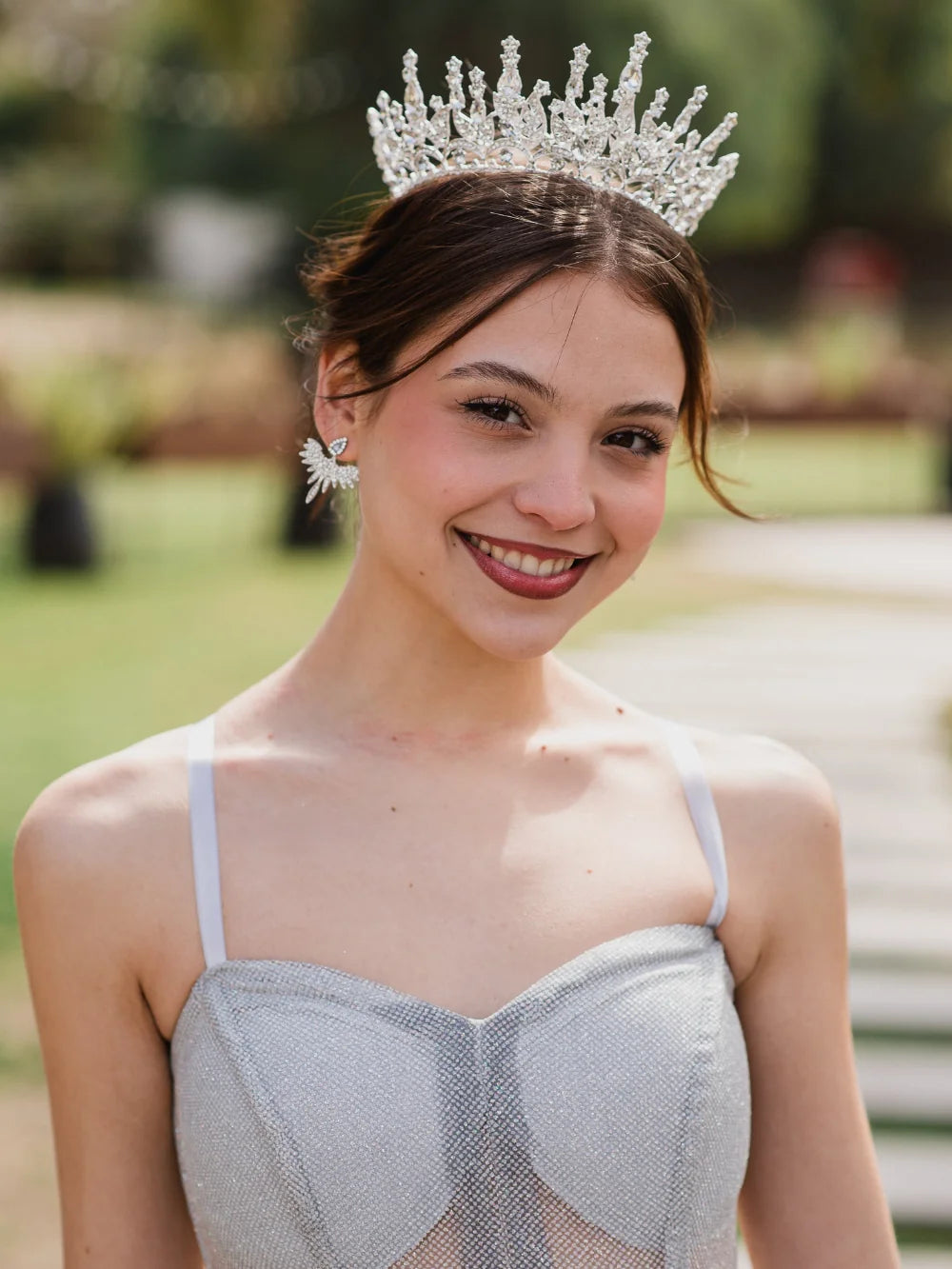 Llama Real – Cristal Plateado es la definición exacta de una corona con alma eterna. Con su estructura circular completa, su brillo puro y su diseño simétrico, esta joya ha sido creada para realzar los momentos más significativos con elegancia clásica y una luz que no necesita presentación.