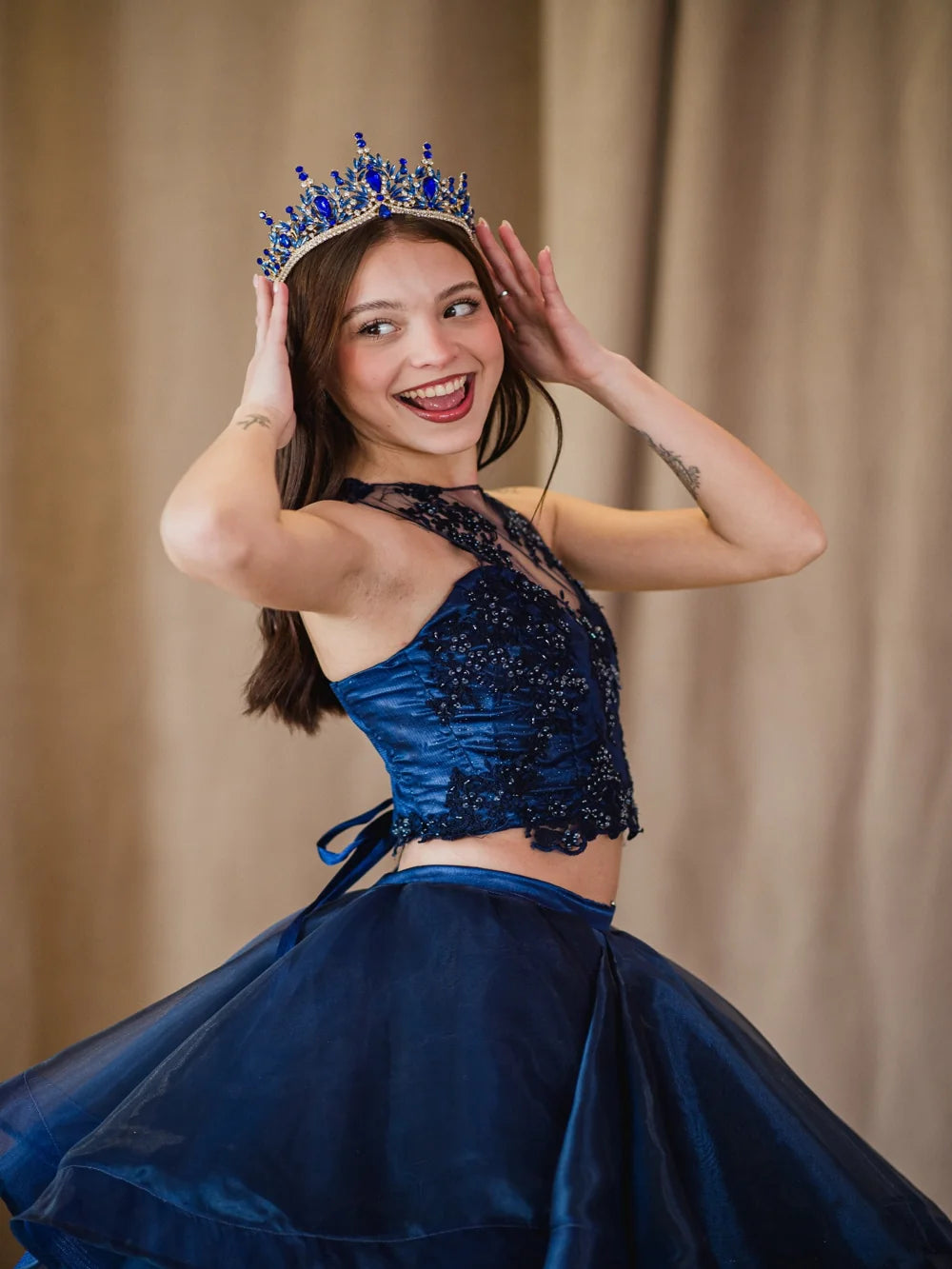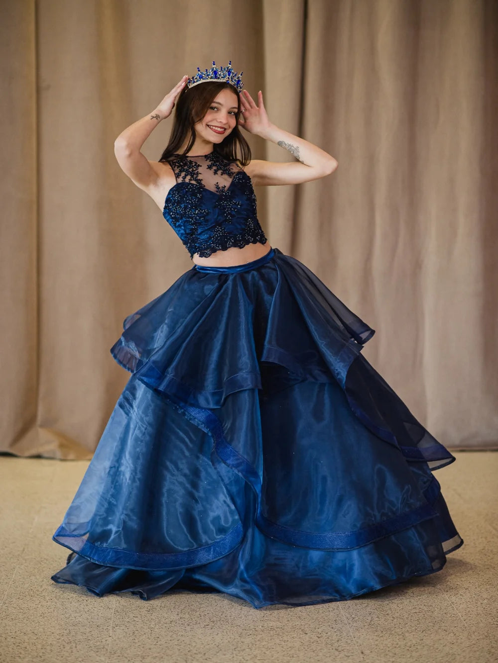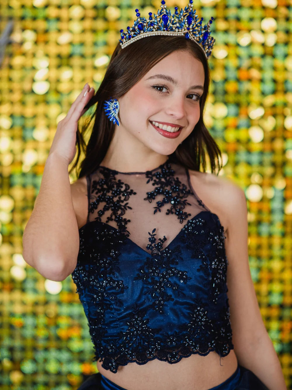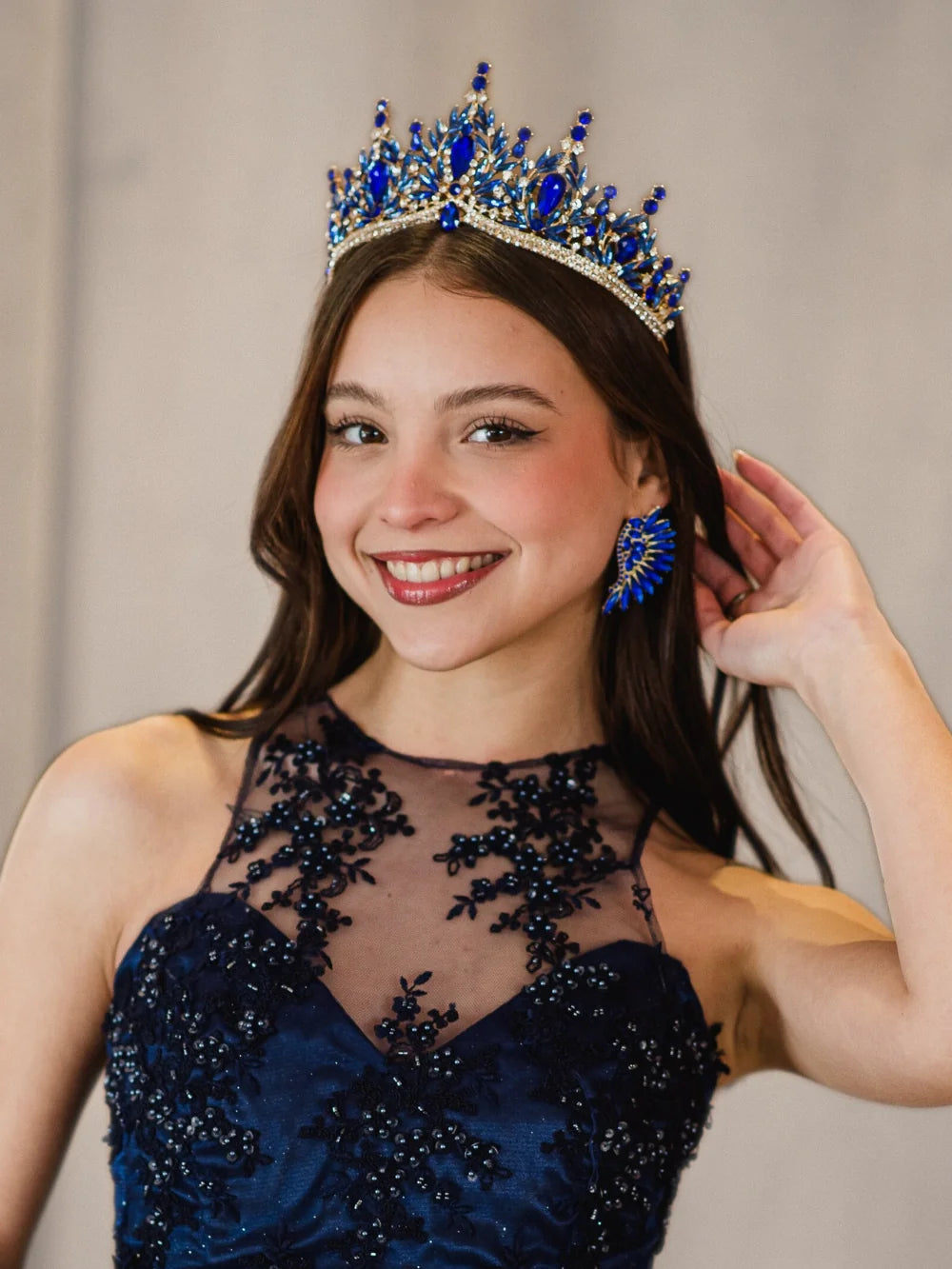 Trono Celestial – Azul Mar es una corona que transmite el poder del mar desde la primera mirada. Con un diseño majestuoso y un color impactante, esta pieza fue creada para quienes desean vivir su gran momento con una presencia imponente, elegante y completamente inolvidable. Es ideal para quinceañeras que sueñan con una entrada triunfal y diferenciarse con estilo propio y carácter.