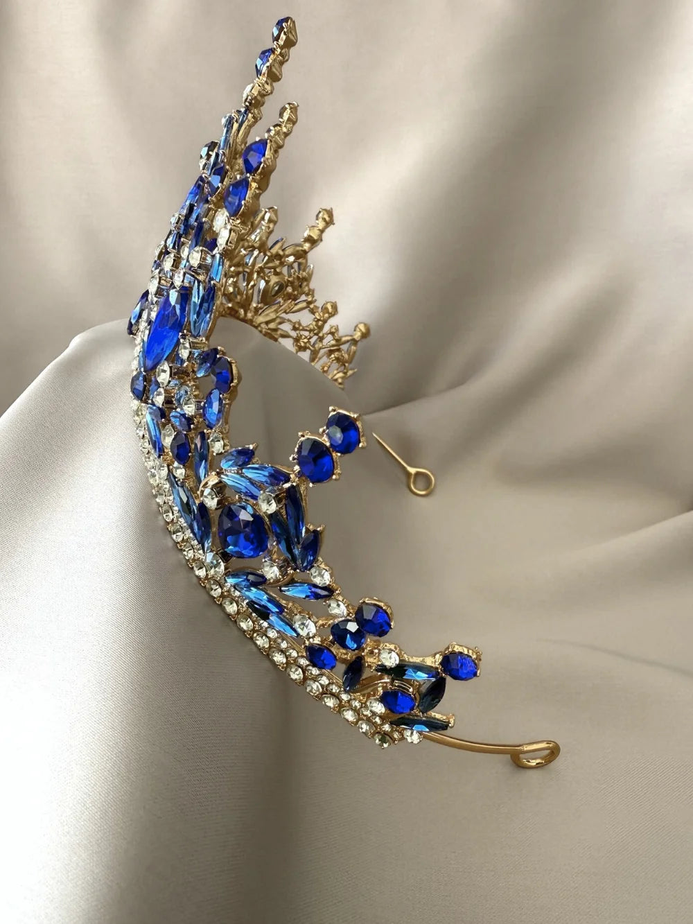✔ Material: metal con piedras simil cristal azul claro