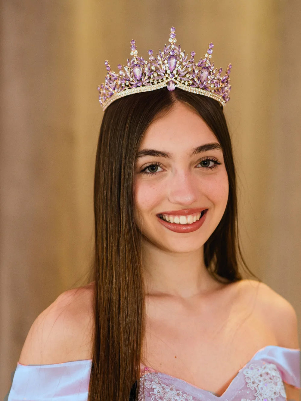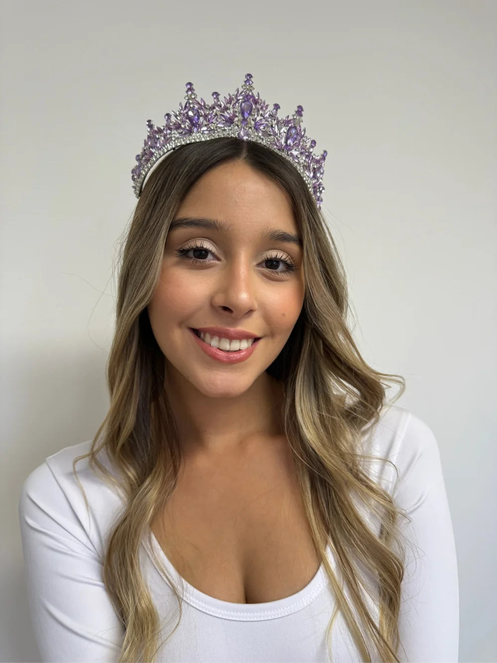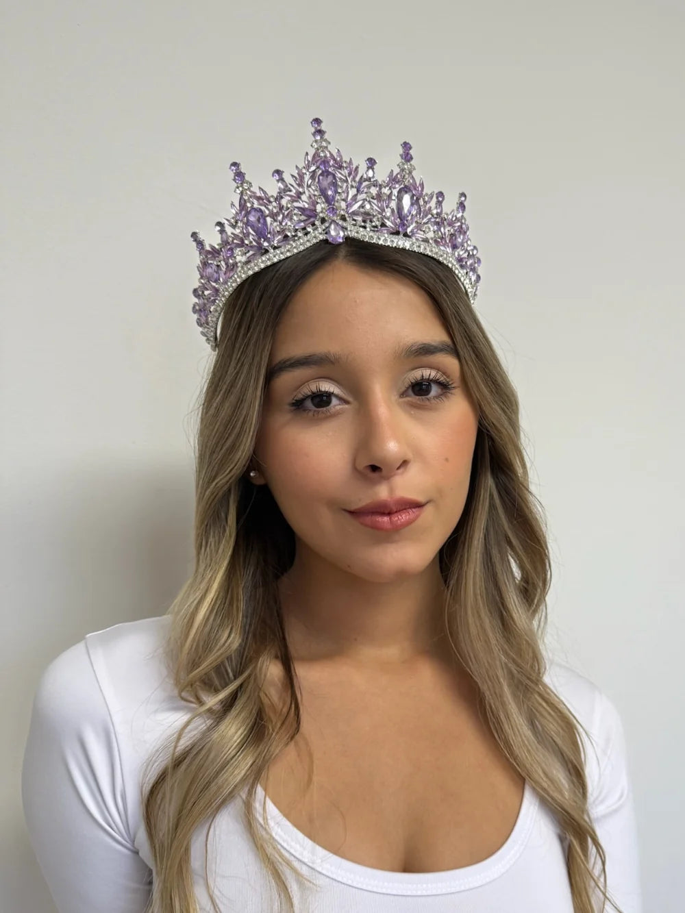 Trono Celestial – Lila Boreal es una joya nacida del cielo nocturno y las luces del norte. Con un diseño de ensueño, piedras tornasoladas en tonos lilas y una silueta que recuerda a una constelación viva, esta pieza fue creada para quienes desean que su gran día esté lleno de magia, brillo y personalidad.