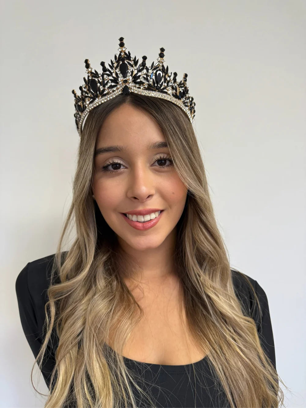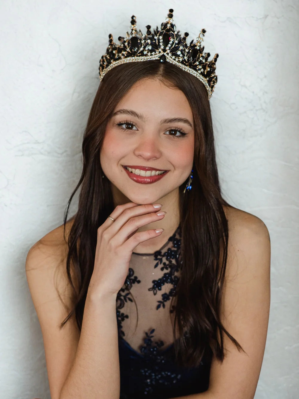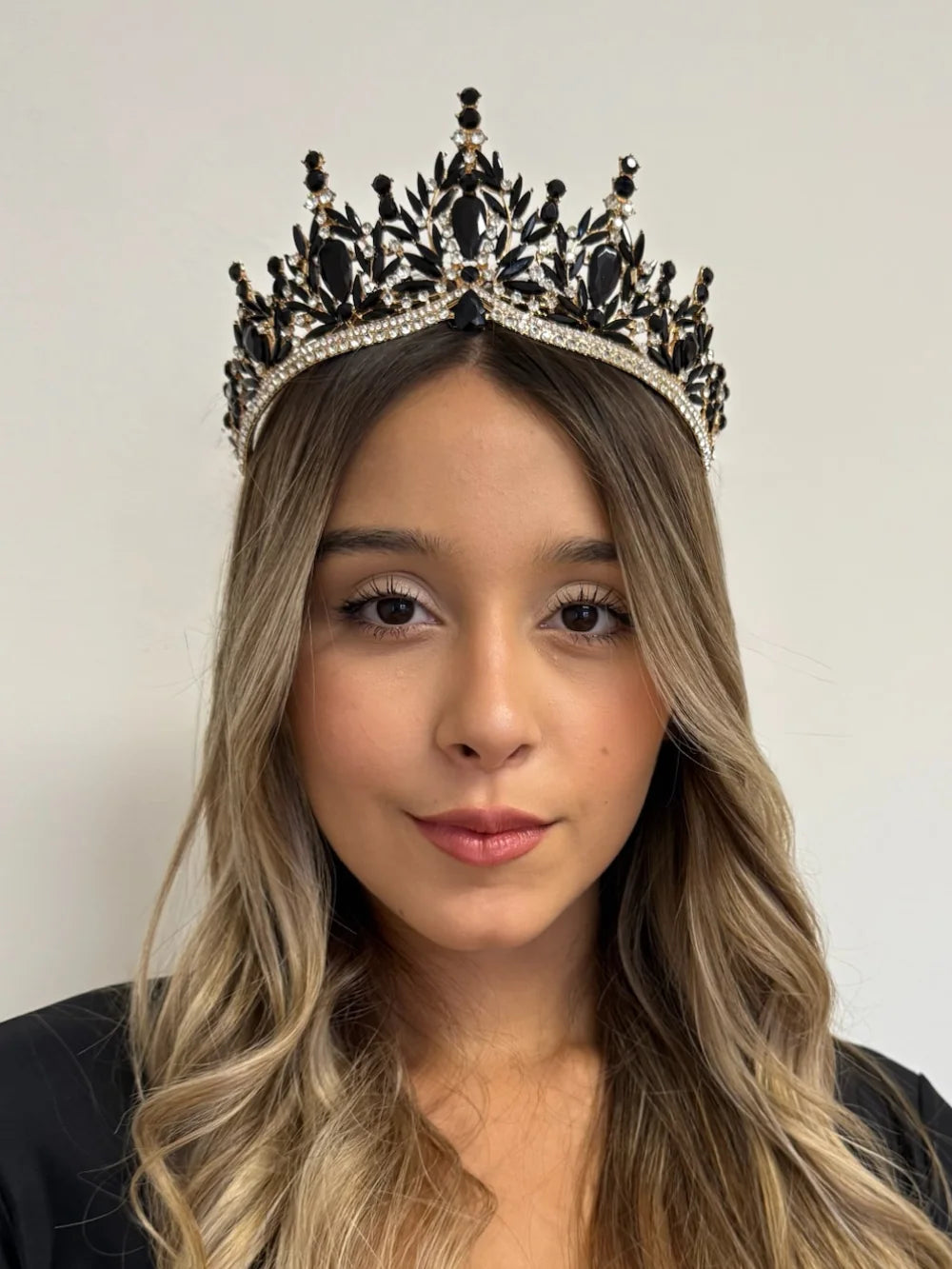 Corona Trono Celestial – Ónix Real es una joya con alma nocturna. Misteriosa, imponente y absolutamente hipnótica, esta pieza fue creada para mujeres que desean dejar una impresión inolvidable. Su diseño combina la fuerza del color negro con la delicadeza de un entramado floral, evocando la imagen de una reina que domina la noche con elegancia y presencia.