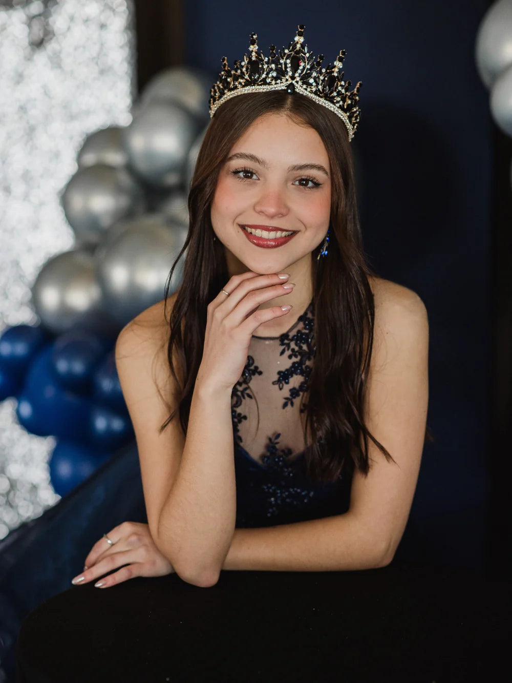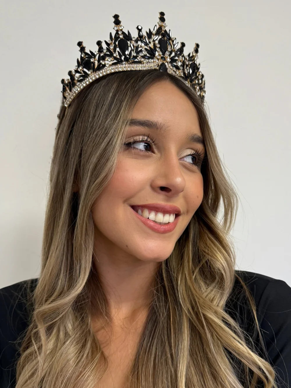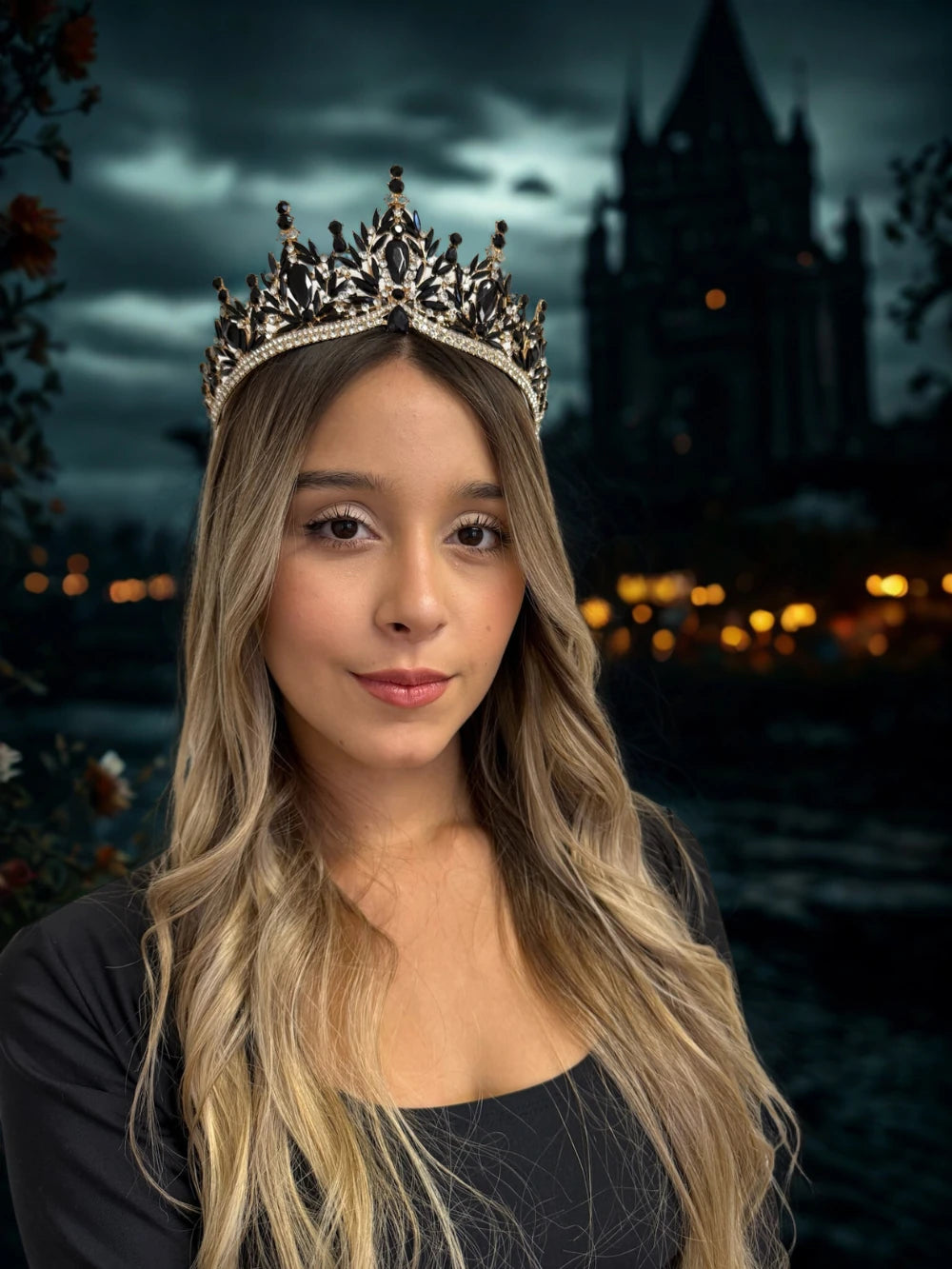 Corona Trono Celestial – Ónix Real es una joya con alma nocturna. Misteriosa, imponente y absolutamente hipnótica, esta pieza fue creada para mujeres que desean dejar una impresión inolvidable. Su diseño combina la fuerza del color negro con la delicadeza de un entramado floral, evocando la imagen de una reina que domina la noche con elegancia y presencia.