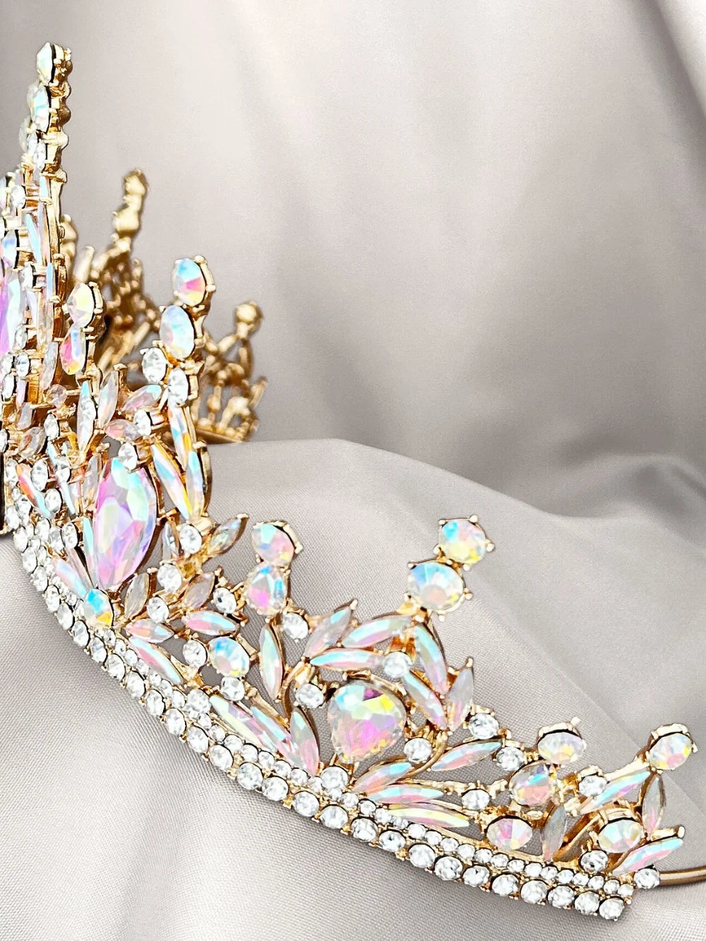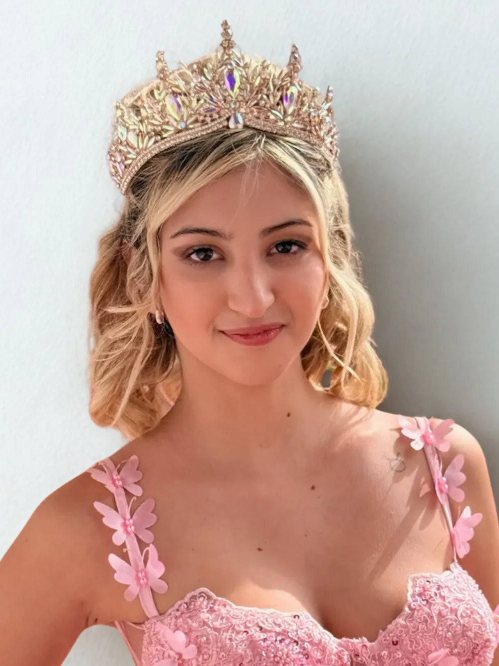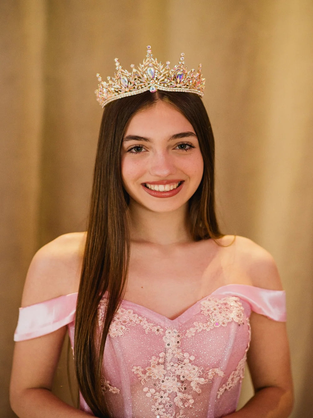 Corona Trono Celestial – Tornasol Galaxia es una corona que parece traída de otro mundo. Esta joya deslumbrante combina lo etéreo con lo impactante, con un diseño que recuerda a constelaciones en movimiento y cristales que capturan la luz como si reflejaran el universo entero. Fue creada para quienes desean brillar como nunca, para protagonistas de grandes celebraciones que entienden que su momento es único, y merecen destacarse como estrellas.