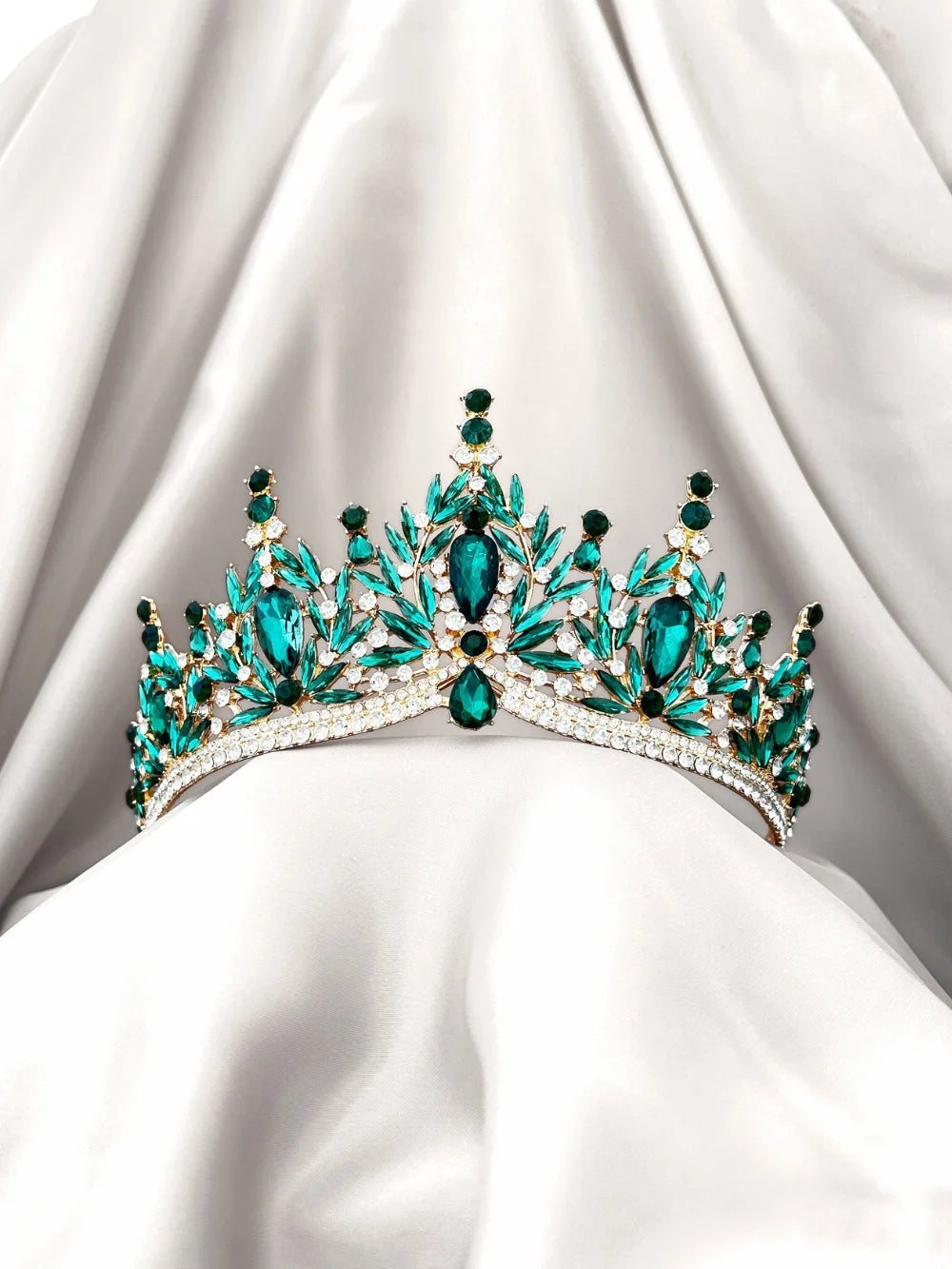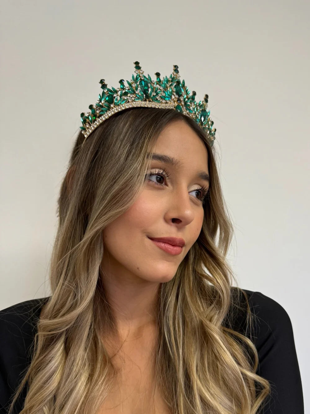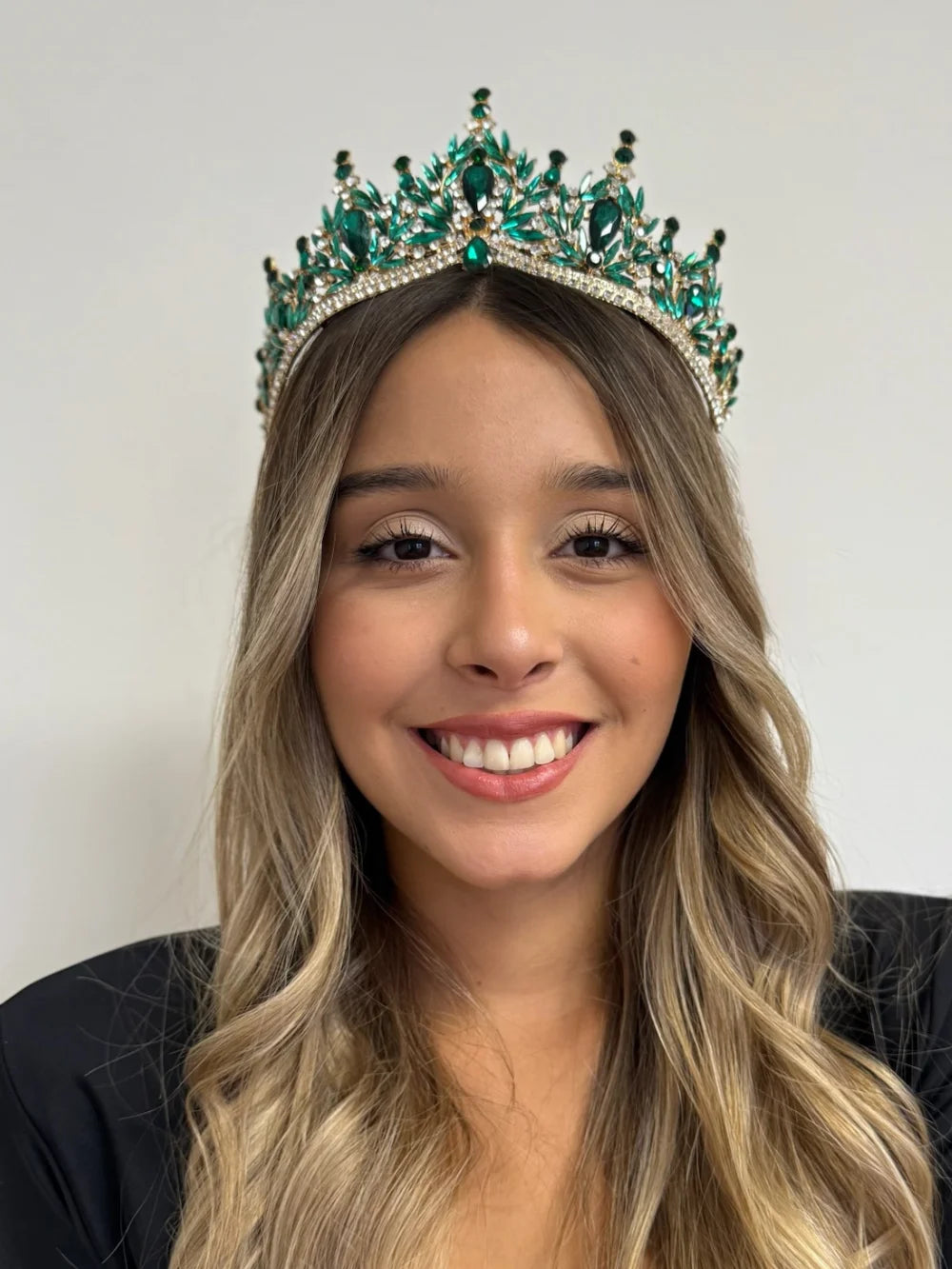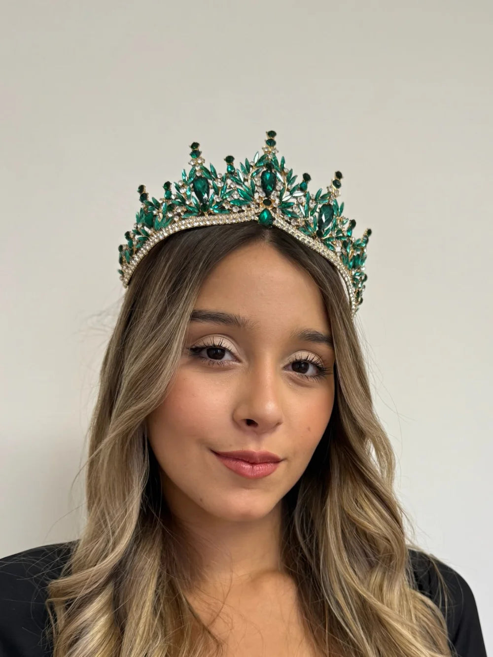 Trono Celestial – Verde Esmeralda es una joya que irradia poder, elegancia y frescura. Con una estructura sólida y un diseño exuberante, esta pieza está hecha para mujeres jóvenes que desean marcar su presencia desde el primer instante. Para una quinceañera que sueña con una entrada de impacto, esta corona ofrece exactamente lo que promete: grandeza visual y detalle artesanal.