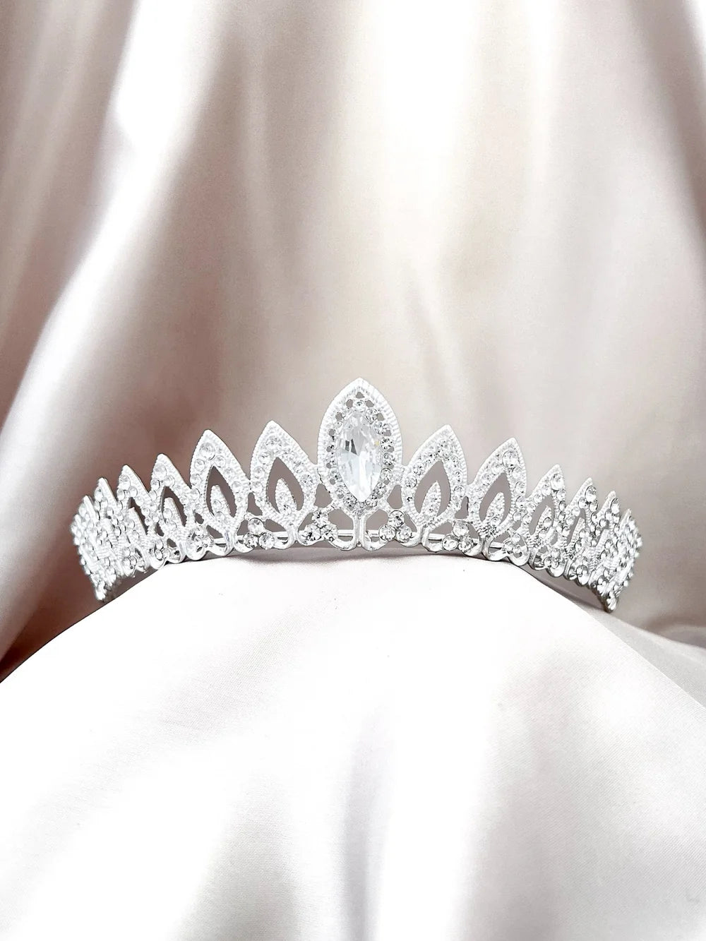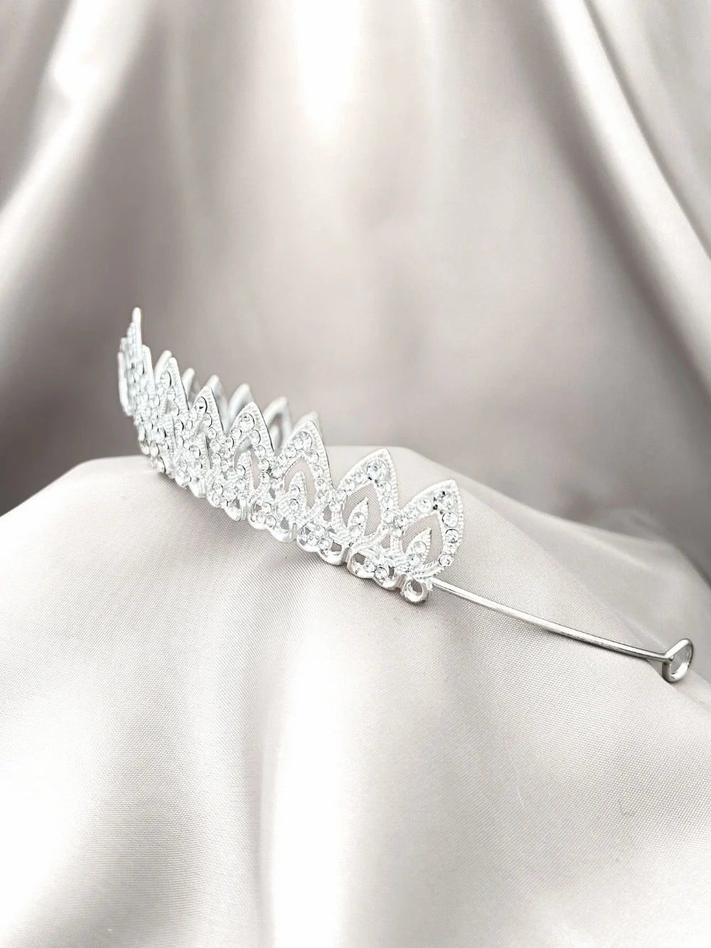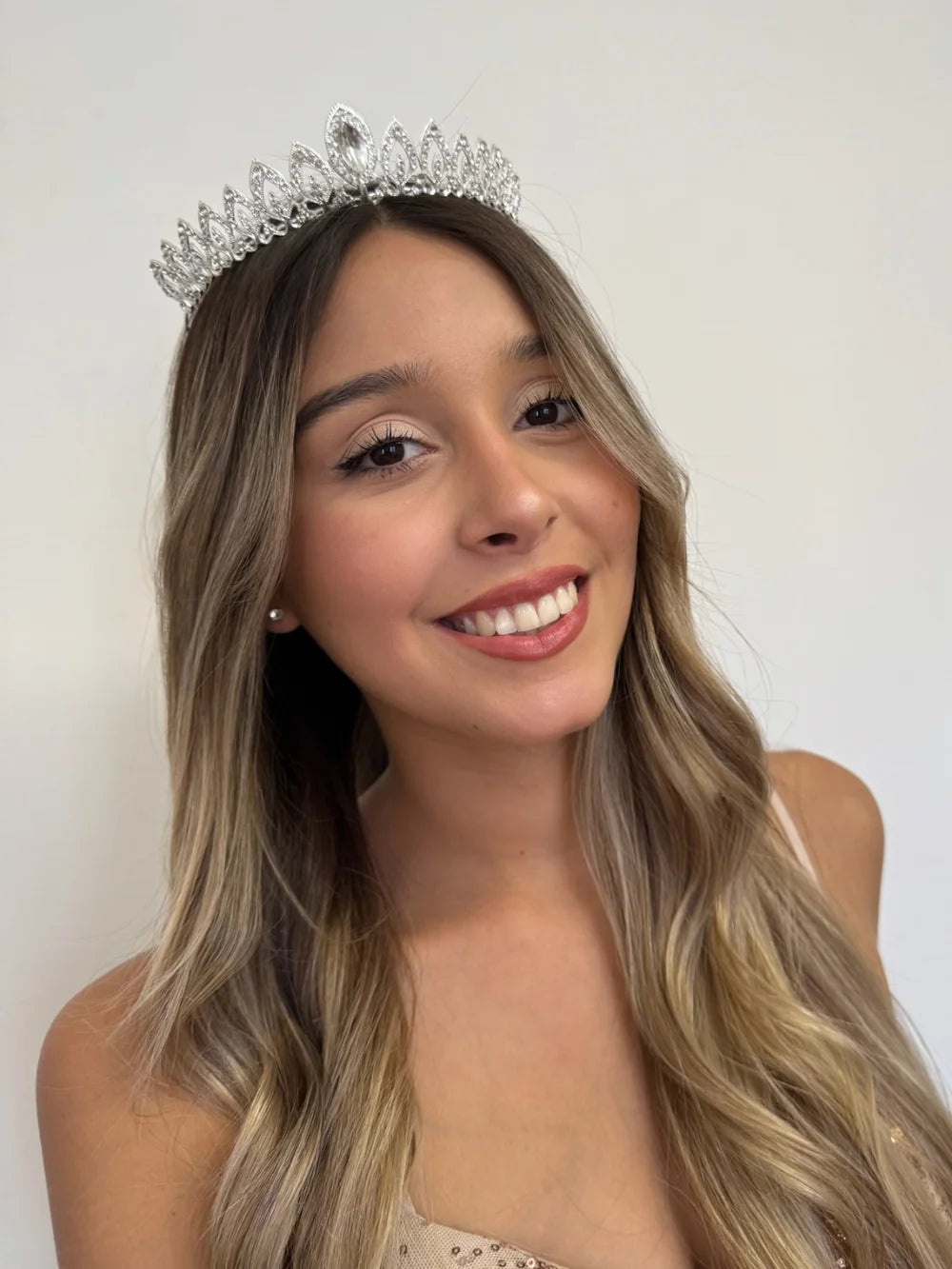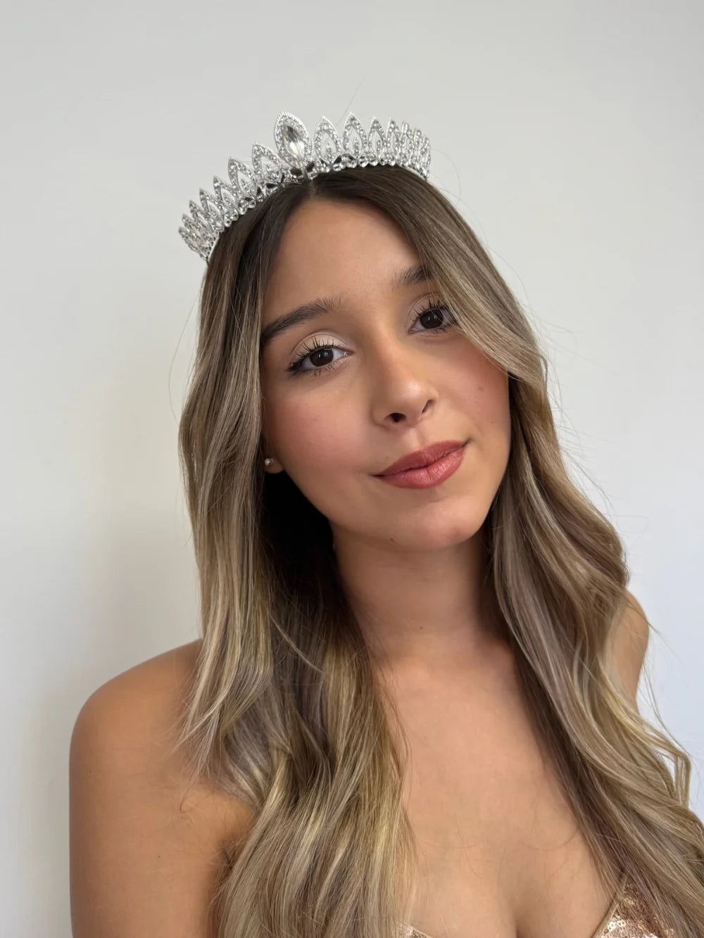 Luz Serena es una joya que demuestra que lo sutil también puede ser poderoso. Esta pieza, delicada y refinada, fue creada para quinceañeras que buscan un accesorio atemporal, elegante y de líneas limpias. Con una estructura simétrica en tono plateado y una hilera de cristales meticulosamente dispuestos, esta joya aporta luz y altura al rostro sin necesidad de excesos.