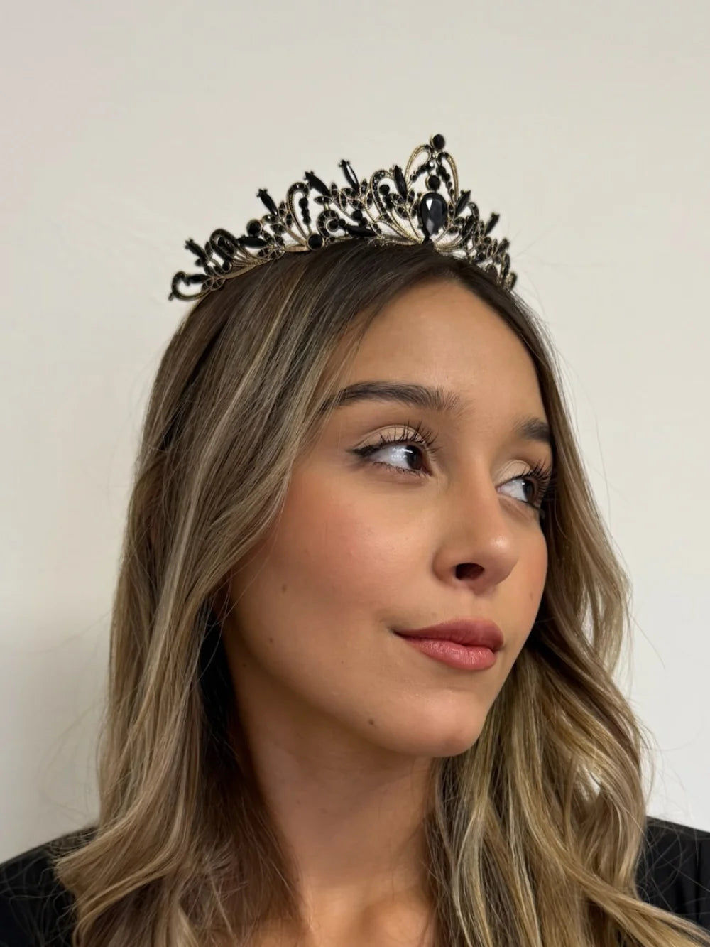 Tiara Encanto Nocturno – Ónix Bronze es una pieza que redefine el concepto de elegancia con una estética poderosa y envolvente. Confeccionada para quienes eligen caminos no convencionales, esta tiara está cargada de detalles oscuros, texturas ornamentales y una energía que conjuga misterio, fuerza y belleza. Ideal para quinceañeras alternativas, producciones editoriales, fiestas temáticas o eventos nocturnos que merecen una presencia inolvidable.